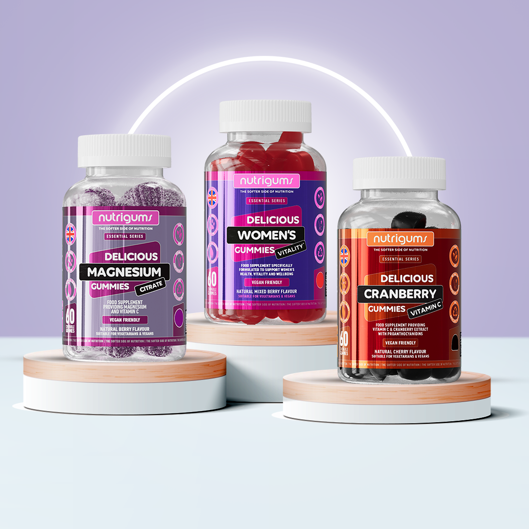 Nutrigums® Эмэгтэйчүүдийн Витамин Багц нь эмэгтэйчүүдэд зориулсан өдөр тутмын эрүүл мэндийн гурван бүтээгдэхүүнийг агуулдаг. Энэхүү багцад Womens Vitality, Cranberry&C болон Magnesium citrate бүтээгдэхүүнүүд багтдаг. Веган болон цагаан хоолтнуудад тохиромжтой.