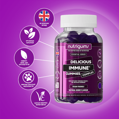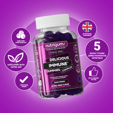 Дархлаа дэмжих гамми Нутригамс® Дархлаа дэмжих гамми нь байгалийн гаралтай нэрс жимсний амттай бөгөөд шууд хэрэглэхэд тохиромжтой дархлааг дэмжих бүтээгдэхүүн юм. Гамми нь биеийн энергийн түвшинг дэмжих, ядаргаа, сульдалтаас гадна стрессээс үүдэн бий болдог исэлдэлтийн стресс (Антиоксидант)-ээс хамгаалдаг. Дархлаа дэмжих гаммиг өдрийн аль ч цагт, хаана ч хэрэглэхэд тохиромжтой дархлаагаа дэмжих төгс шийдэл юм. Витамин С, цайр нь антиоксидант, дархлааны тогтолцооны хэвийн үйл ажиллагааг сайжруулах онцгой ач холбогдолтой.