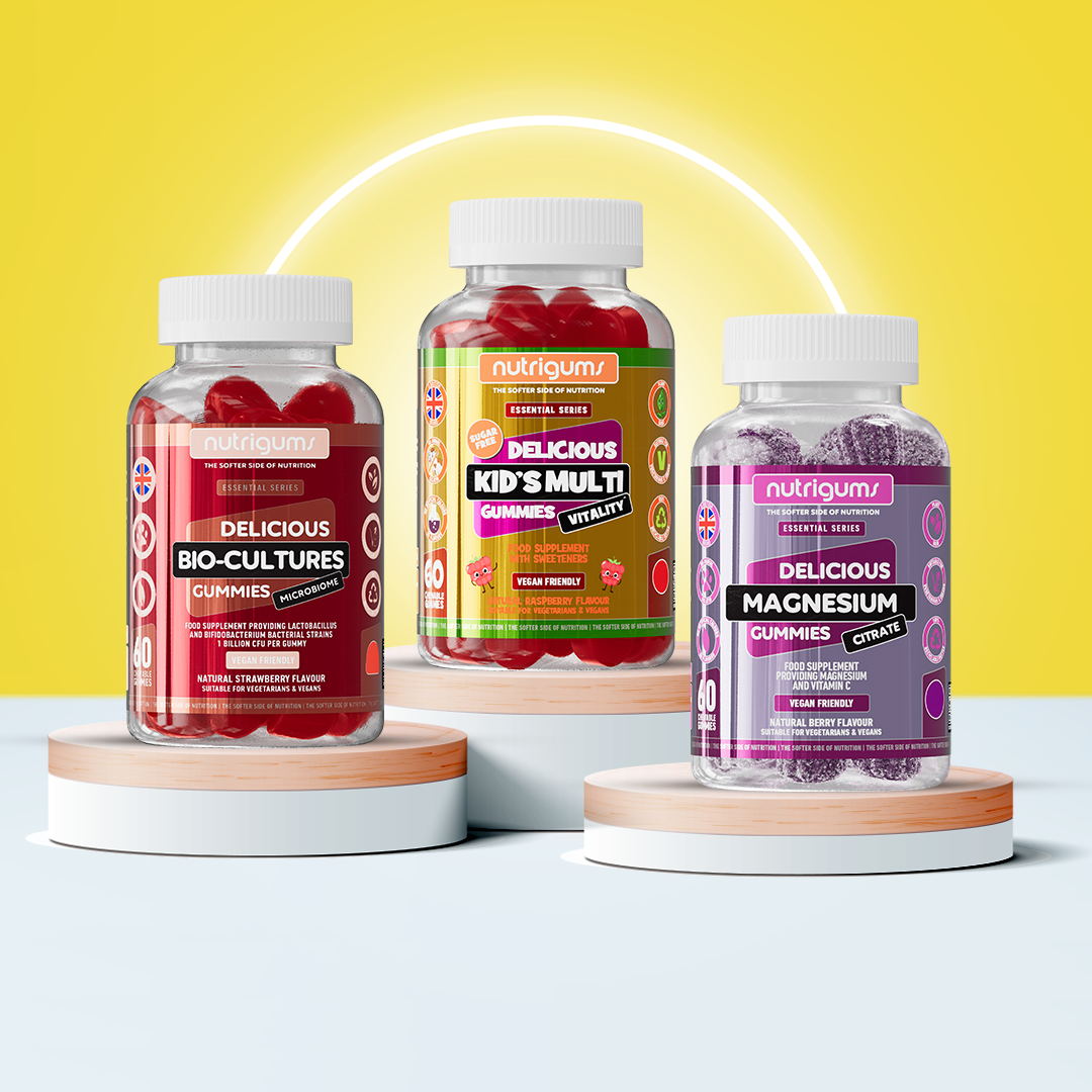 Nutrigums® Kids багцад өдөр бүр хамгийн их борлуулалттай гурван бүтээгдэхүүн болох Nutrigums Kids Multivitamin, Bio Cultures, Magnesium citrate багтсан болно.